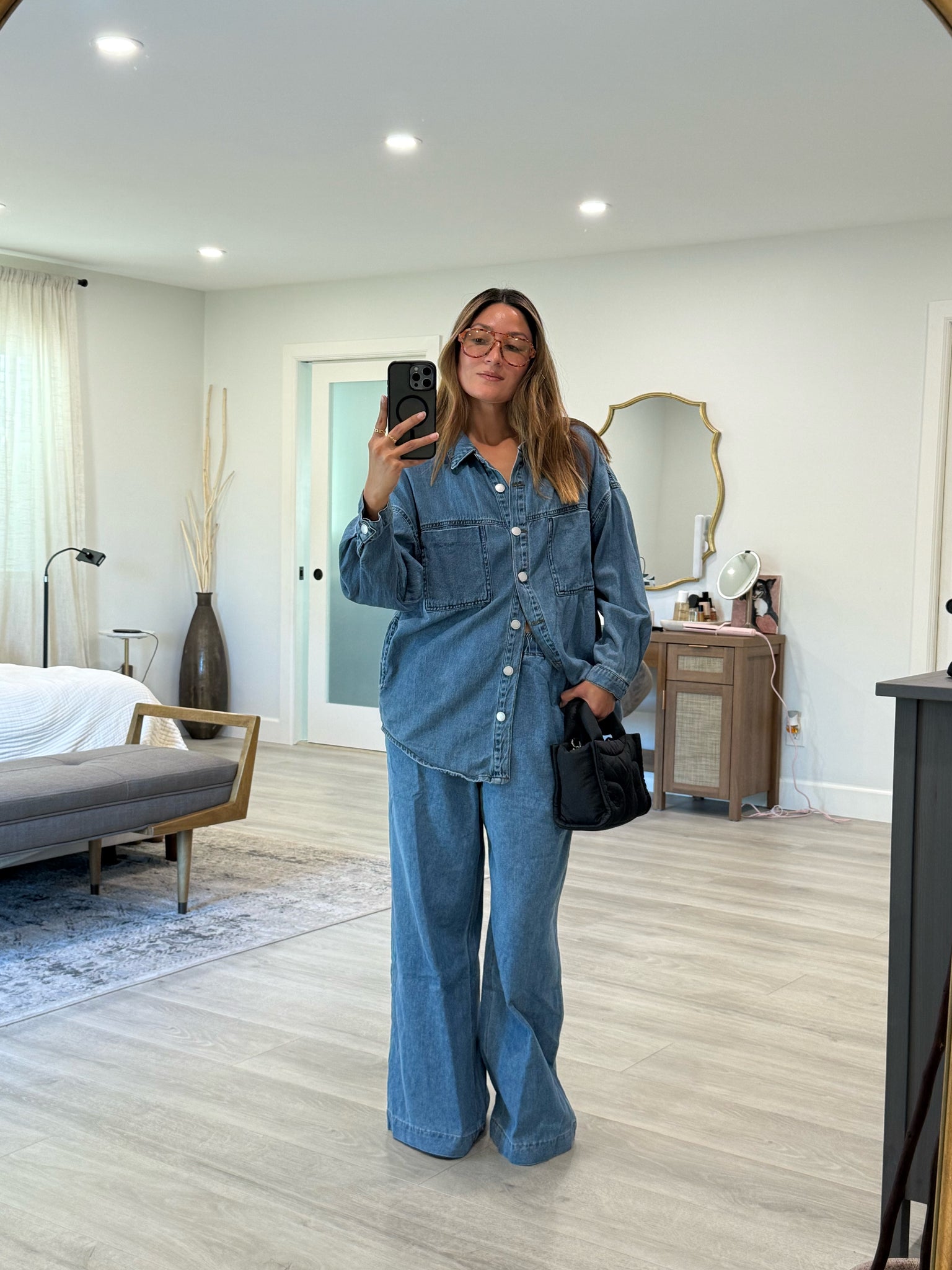 Effortlessly versatile, these denim wide leg pants combine relaxed comfort with timeless style. Featuring a drawstring waistband paired with elastic for a customizable, secure fit, they adapt to your body throughout the day. Functional pockets provide practical storage, while the generous wide leg silhouette offers freedom of movement and a flattering drape. A wardrobe essential that transitions seamlessly from casual outings to laid-back social settings.
