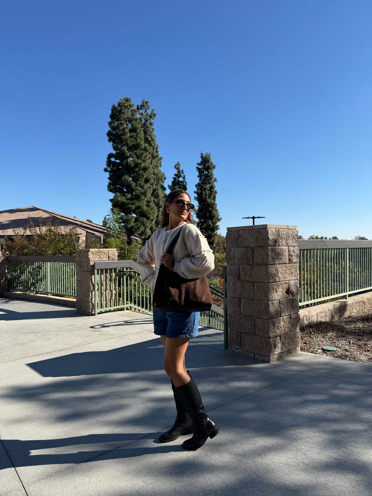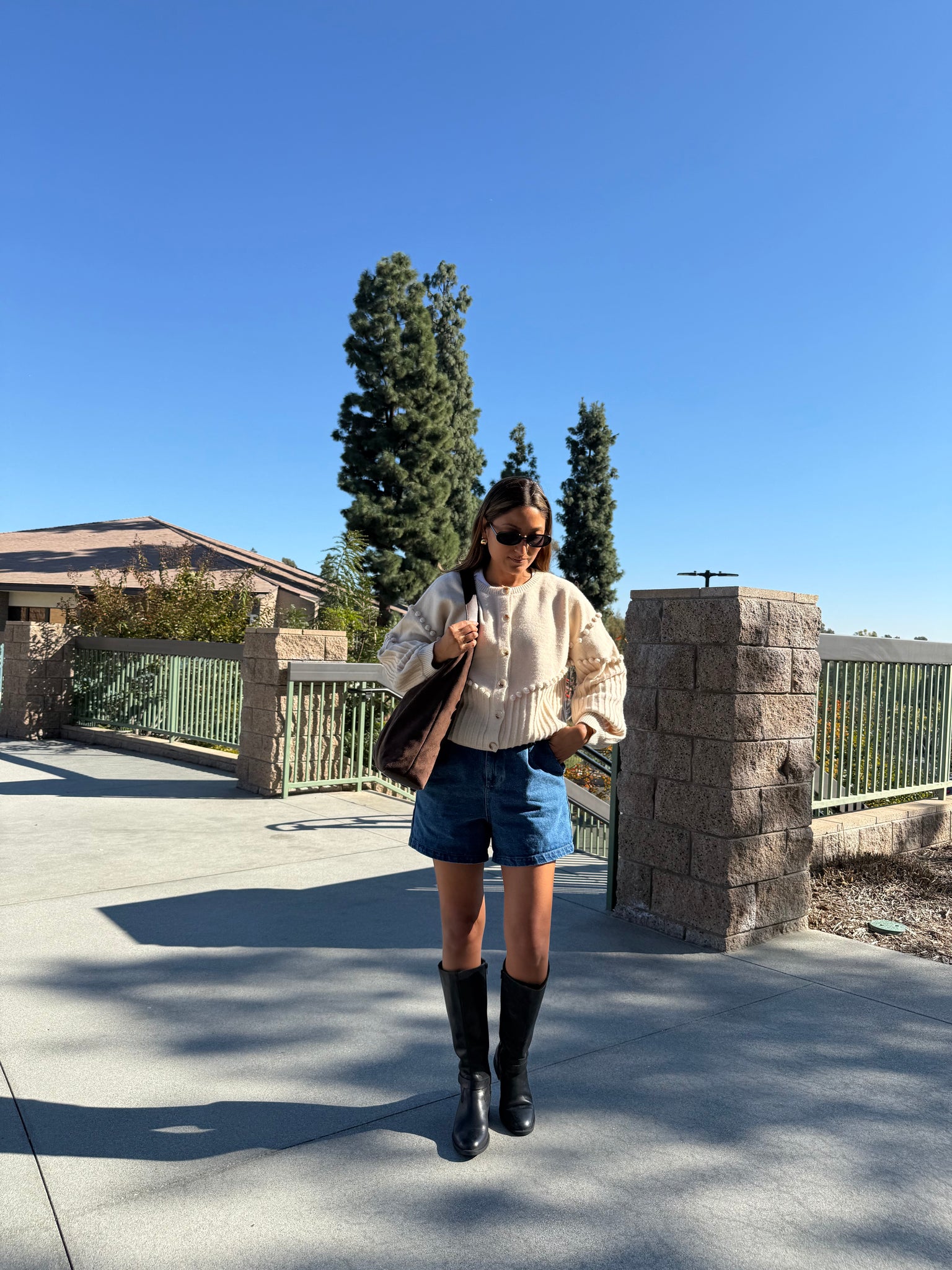 This knit cardigan features trendy balloon sleeves and a charming Pom Pom pattern design. The front buttons add a touch of functionality to this stylish piece. This cardigan is perfect for adding an extra layer of warmth and fashion to any outfit.